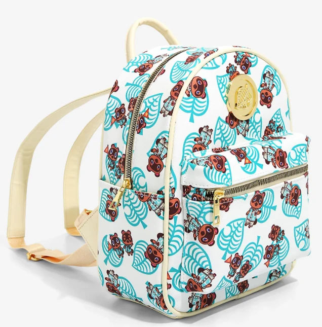 ThisAnimal Crossingmini backpack would definitely be on top of our deserted island getaway packing list. Tom Nook, Timmy, and Tommy are all ready to relax with you in their New Horizons Hawaiian shirts, alongside an allover leaf logo pattern and gold-tone metal badge! Also features adjustable straps, side pockets, and several zippered compartments and pocketsfeel free to throw your Bells inside, Tom Nook’s been waiting patiently for those loan payments.