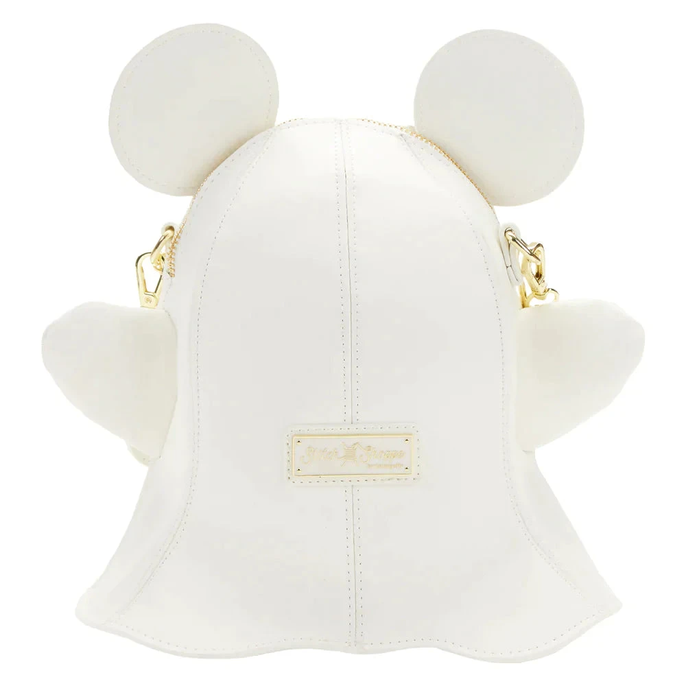 Your wardrobe is in for a scare with this spectral Stitch Shoppe bag. The Stitch Shoppe Mickey Mouse Ghost Glow in the Dark Crossbody Bag glows in the dark and is a 3D figural design. It features a vegan leather Mickey Pumpkin bag charm and embroidered details. It may spook you just how much youll be able to fit in this spacious purse.