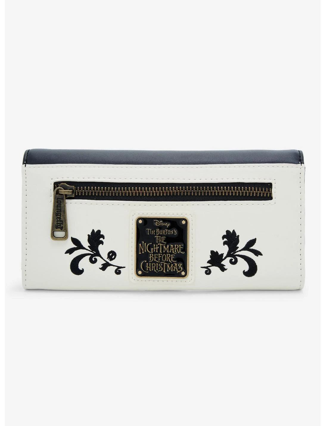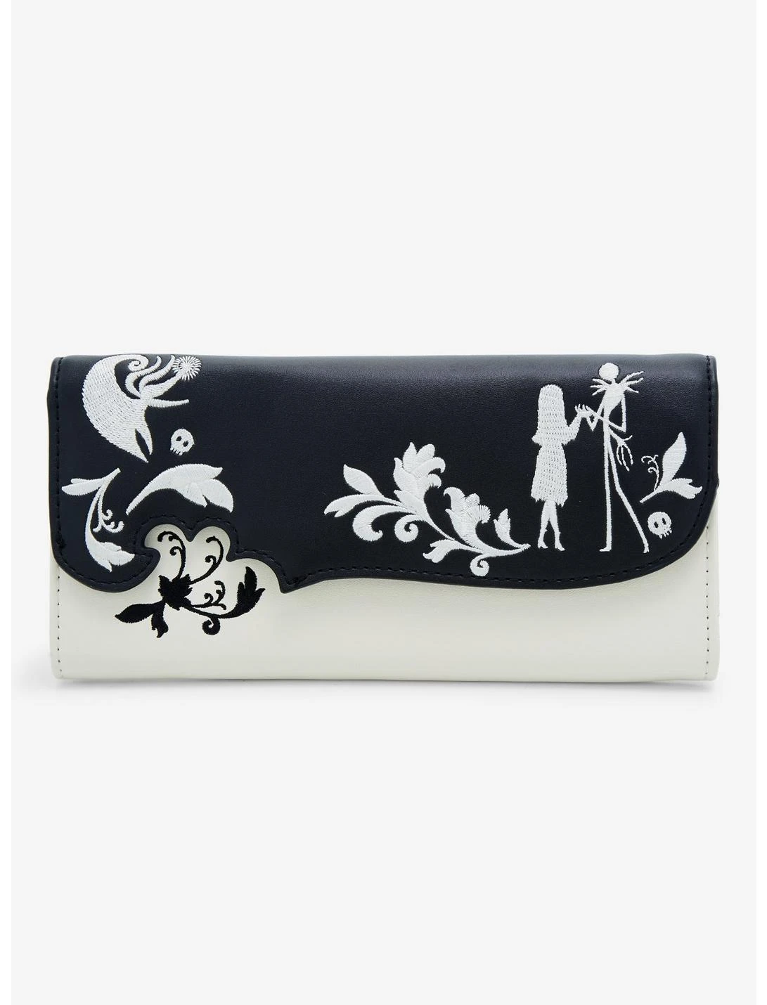 This Loungefly duowas simply meant to be with you! Inspired byThe Nightmare Before Christmas,this handbag and wallet set features a brocade-style design with embossed silhouettes of Jack, Sally, and Zero. The bag featurestop handles, a snap closure, and a removeable crossbody strap. The wallet featuresembroidered details and silhouettes of Jack, Sally, and Zero,it also comes with six interior card slots and three bill compartments, making for a style that is simply meant to be part of your accessory collection. Thisset is fit for a Pumpkin King.