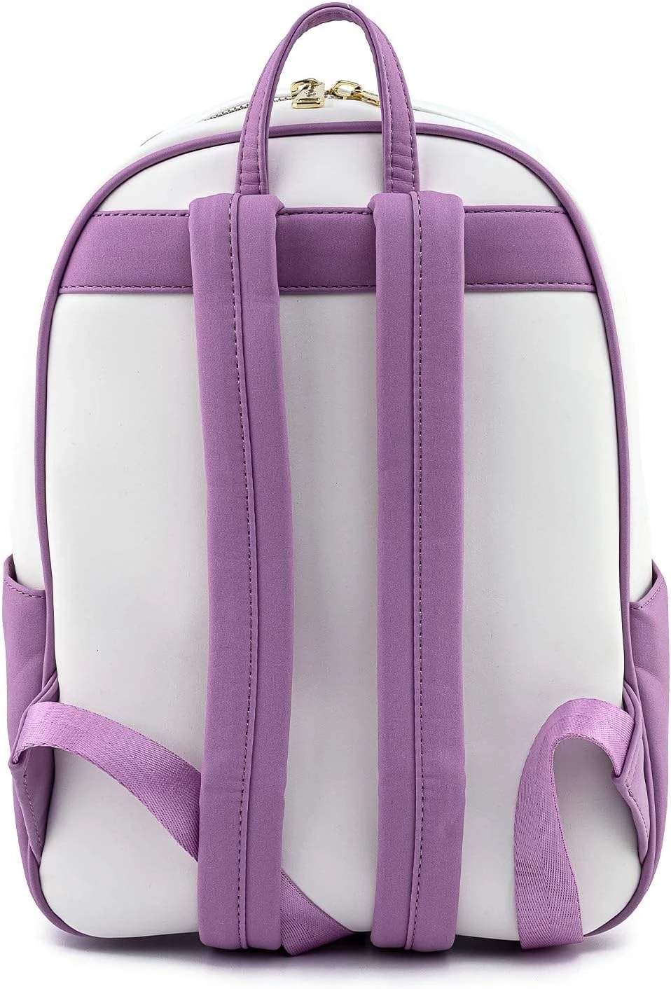 Get ready for the best day ever with this adorable new Tangled inspired backpack by Loungefly. The front of this bag features Rapunzel and Pascal having just escaped from their tower. Framed by a beautiful floral border, and a bright fuchsia piping, this backpack is a great addition to any whimsical wardrobe.