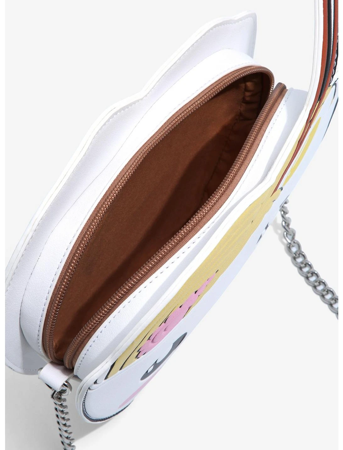 Heading out for some ramen? Take a bite out of this bag for your OOTD! This crossbody bag features a figural chibi bowl of ramen, and comes with a crossbody chain. Top zipper closure.