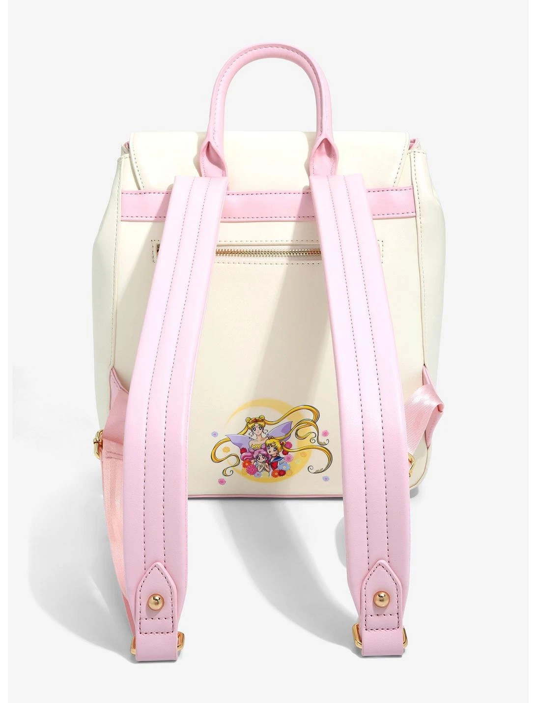 Neo Queen Serenity is here to lend her graceful style to your wardrobe! Based on her look in the originalPretty Guardian Sailor Moonanime, this rucksack bag features a front portrait of the previous incarnation of Usagi Tsukino (AKA Sailor Moon!), decorated by flower appliqus and Queen Serenity’s winged dress ribbon on the pocket flap. Whether you’re fighting evil by moonlight or winning love by daylight, this bag makes a great look for a touch of Moon Kingdom charm to any outfit! Also features an enamel badge of Queen Serenity’s crown, gold-toned hardware, a portrait of the Queen with Sailor Moon and Sailor Chibi Moon on the back, adjustable shoulder straps, and a crescent moon interior lining pattern.