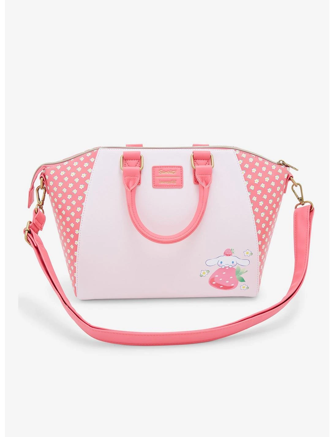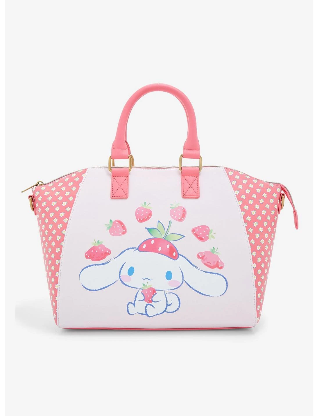 Going berry picking with your fave Sanrio character? Make sure to bring along this sweet satchel to carry all of your berry-picking essentials! Featuring a toss print of Cinnamoroll and strawberries. Comes with a removable and adjustable crossbody strap, top zipper closure, interior drop pocket and a top carrying handle.
