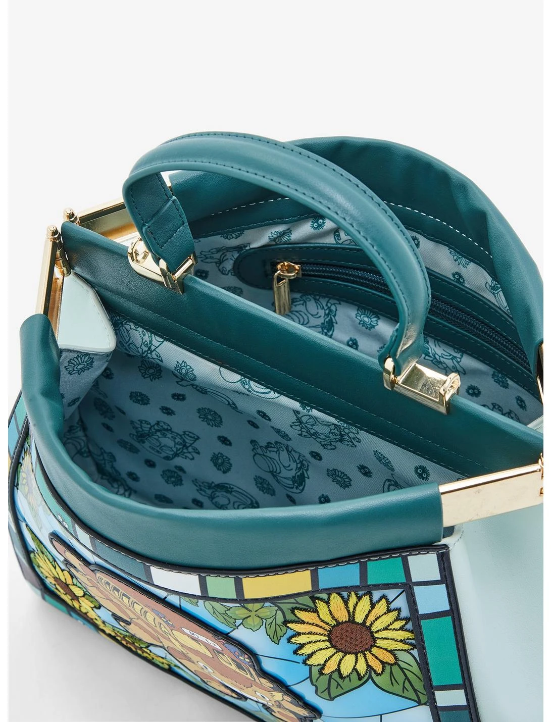 Get ready to explore the forest with thisMy Neighbor Totoroinspired handbag! Features a portrait of Totoro in a field of embroidered sunflowers on the front and a Catbus applique on the back. With a snap frame closure and a removable crossbody strap, this bag is perfect for meeting new forest creature friends!