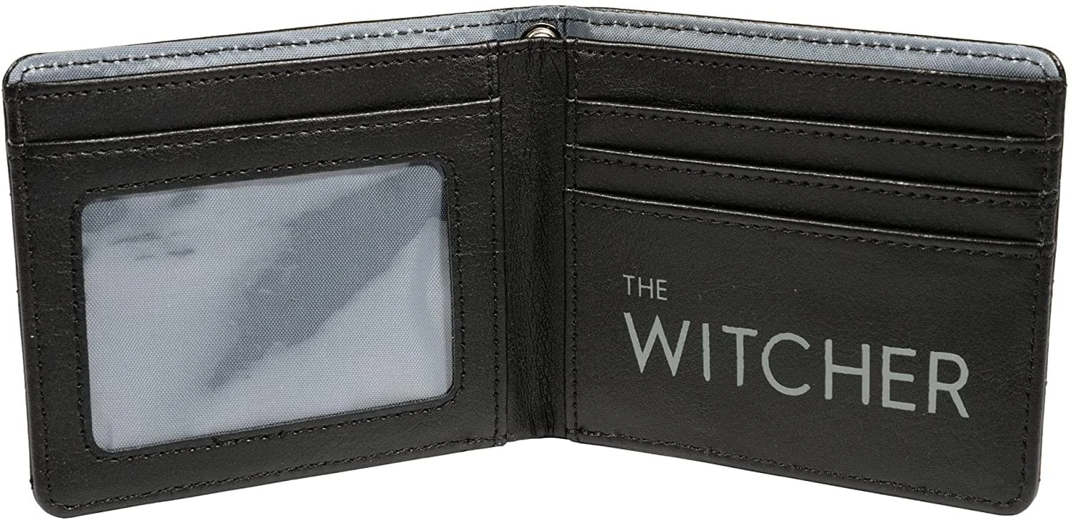 A Witcher works hard for each and every coin. Keep your loot extra safe with an armored wallet from J!NX. Black wallet with White Wolf woven patch, accent stitching and silver rivets on front; The Witcher logo printed on inside with colored pockets. Durable polyurethane construction with metal eyelet on seam. Includes money pocket, 5 card pockets, with additional translucent ID window pocket. Bi-fold style measures approximately 3.5 inches x 4 inches.